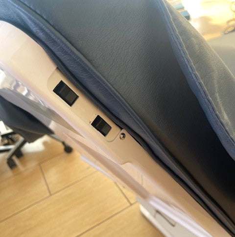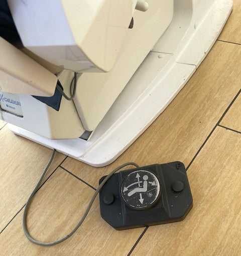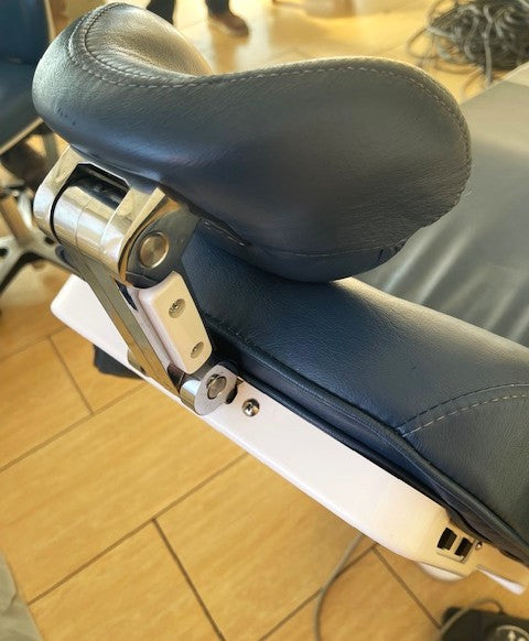 Belmont Bel-20 X-Calibur Patient Chair with Radius Monitor Mount with used blue upholstery. White Plastics, Side Switches and Foot control operated. Hydraulic. We can add new upholstery and you choose the color for an additional charge. (6) in stock