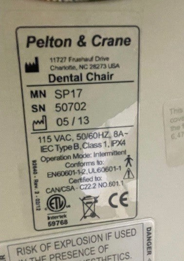 Pelton & Crane SP17 Radius OP Package with Delivery, Assistant Package and Light. Used Black vinyl upholstery in good shape. (6) in stock