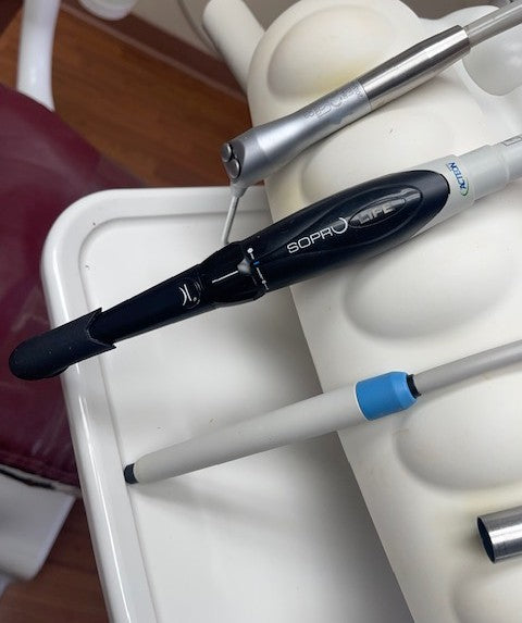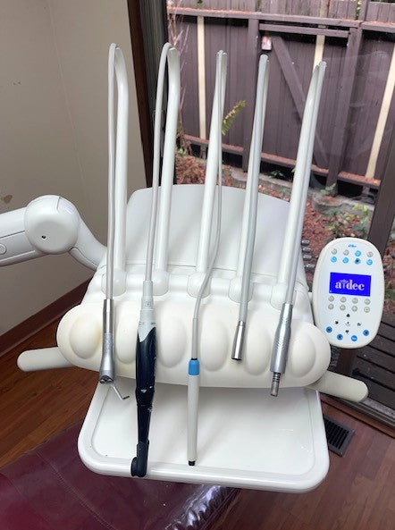 A-dec White 511 Euro/Continental OP Package with a 533 Radius Delivery, Radius Assistant Package, built in EA-52LED Electric Motor, Built in Cavitron, Built in SoPro Camera.