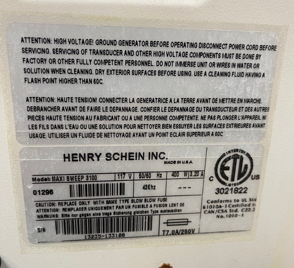 Henry Schein Maxisweep S3100 3 Gal Ultrasonic Cleaner